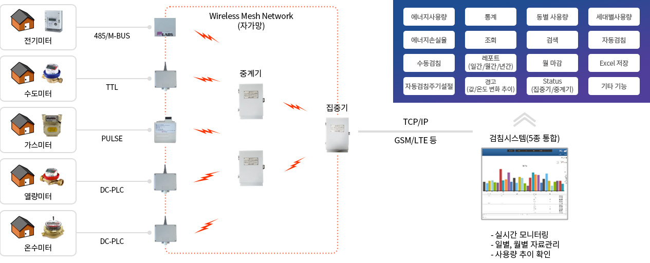 ·Meter Interface : DC-PLC / Pulse / M-BUS / RS485 /TTL / SERIAL 통신 등